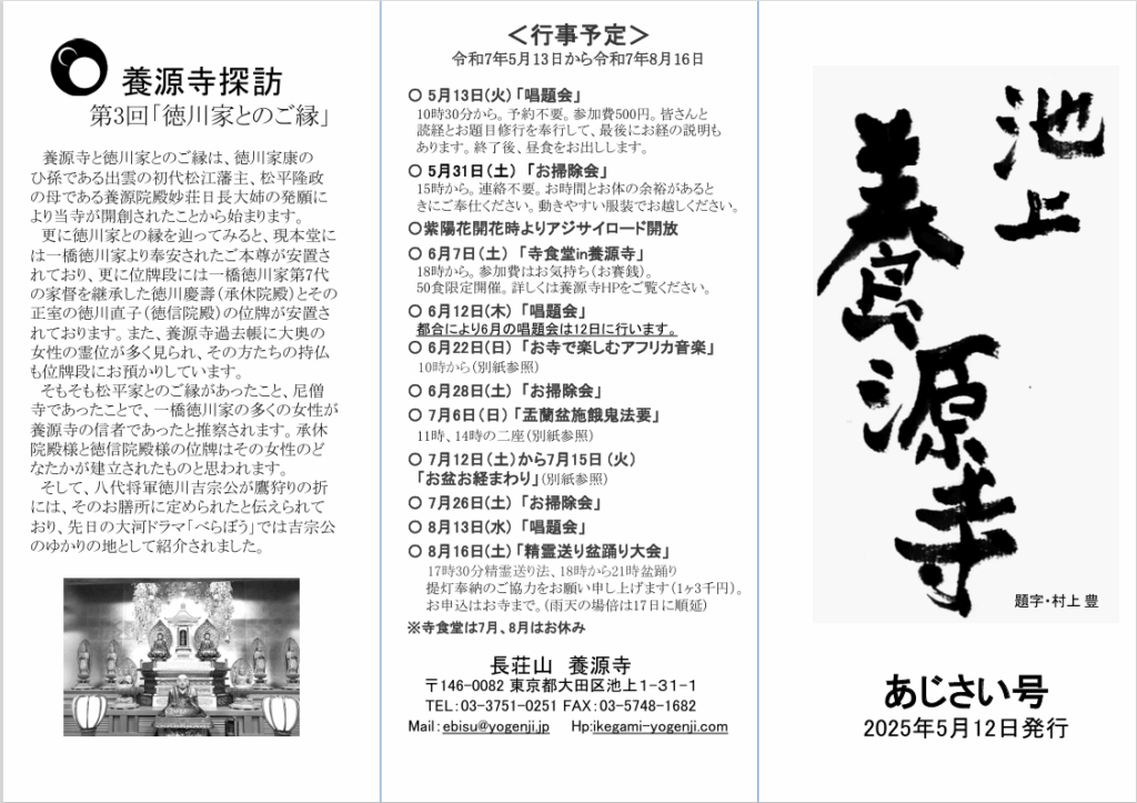 未分類 ようげん寺時報 2025年5月 あじさい号 2025.11.18 ようげん寺時報 2025年2月 節分号 ようげん寺時報 2025年8月 盆踊り号 関連記事 ようげん寺時報 2024年10月号 ようげん寺時報 2024年8月号 ようげん寺報 2021年10月 77号 ようげん寺時報 2025年11月 お会式号 ようげん寺時報 2025年2月 節分号 ようげん寺時報 2025年8月 盆踊り号
