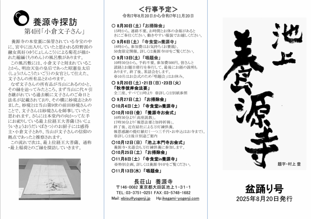 未分類 ようげん寺時報 2025年8月 盆踊り号 2025.11.18 ようげん寺時報 2025年5月 あじさい号 ようげん寺時報 2025年11月 お会式号 関連記事 ようげん寺時報 2025年2月 節分号 ようげん寺時報 2024年10月号 ようげん寺時報 2025年11月 お会式号 ようげん寺時報 2025年5月 あじさい号 ようげん寺時報 2024年8月号 ようげん寺報 2021年10月 77号