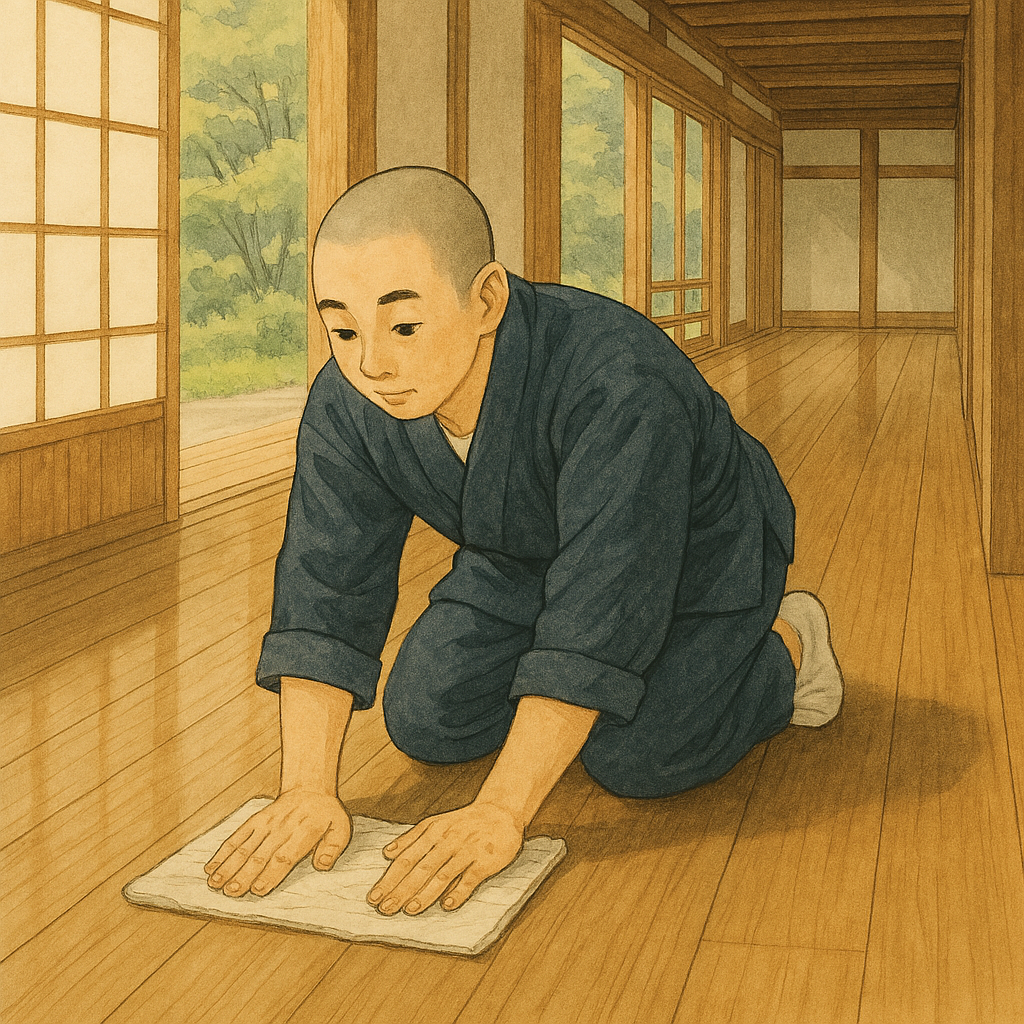 またその時のポイントとして、使っている道具の質感や、石鹸のにおい、ほうきの音、きれいになっていく過程を見るなど。