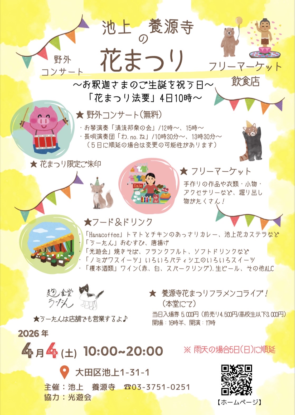 本年も恒例の『花まつり』を4月4日(土) 10:00~20:00に開催いたします!(雨天の場合5日(日)に順延)